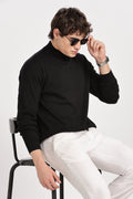 Black Men's Solid High Neck Pullover Sweater (Article - 27442)
