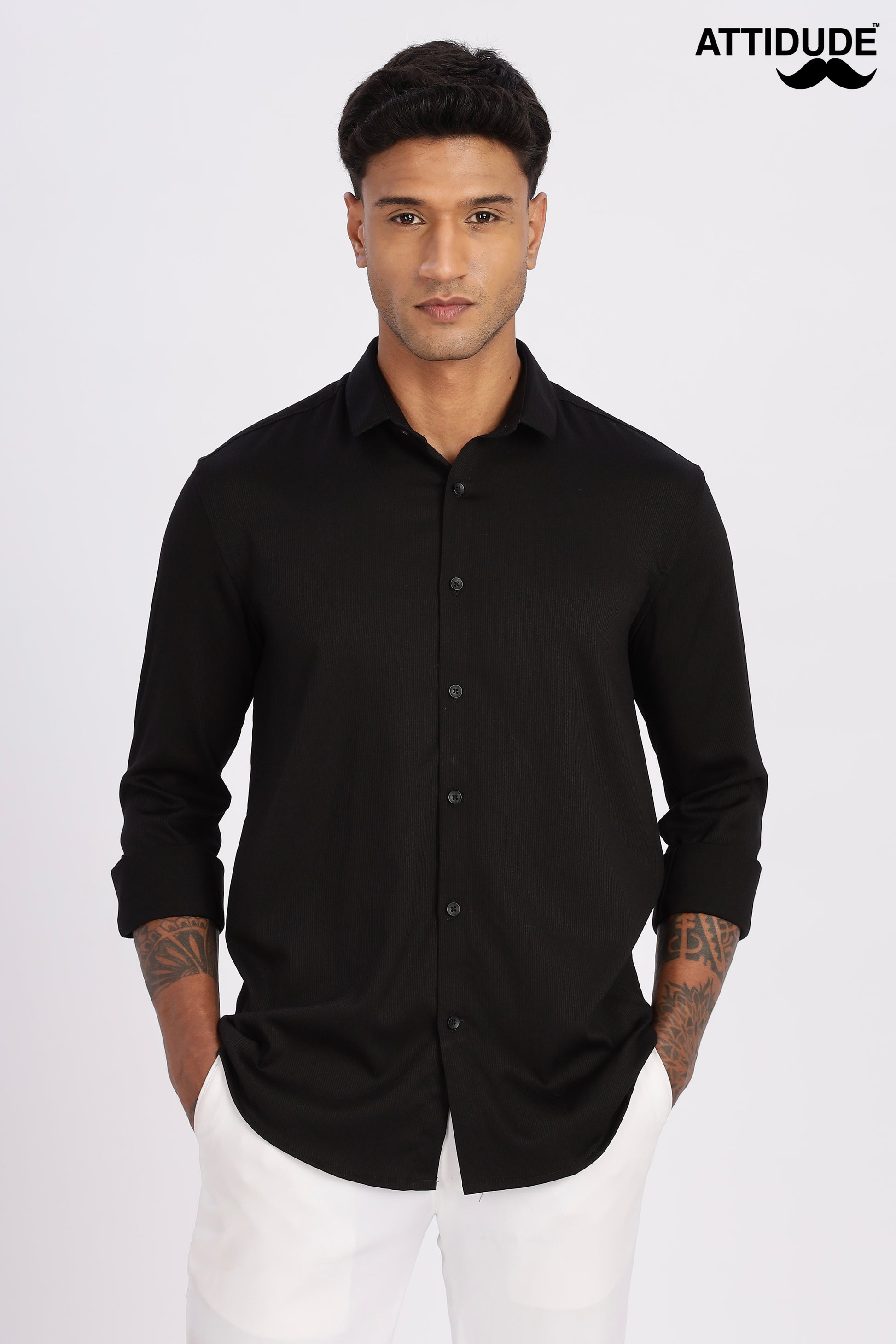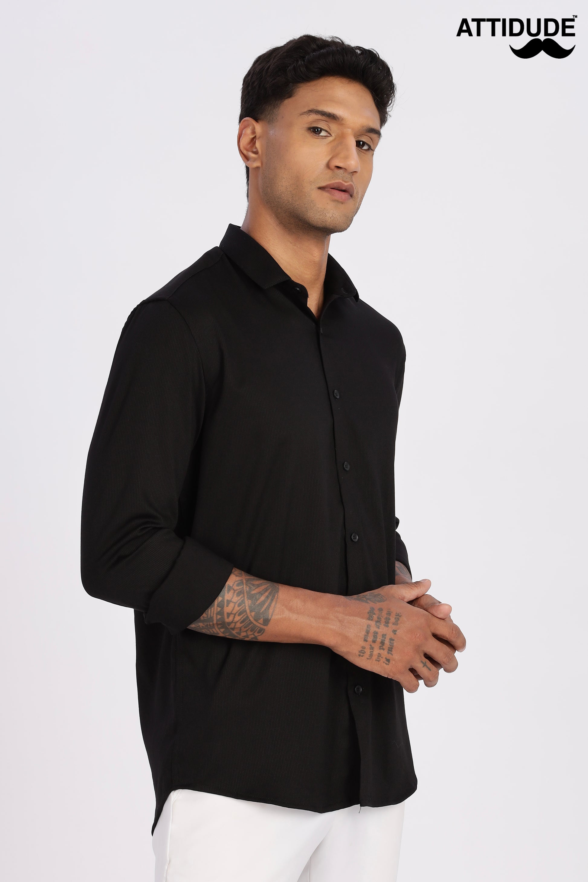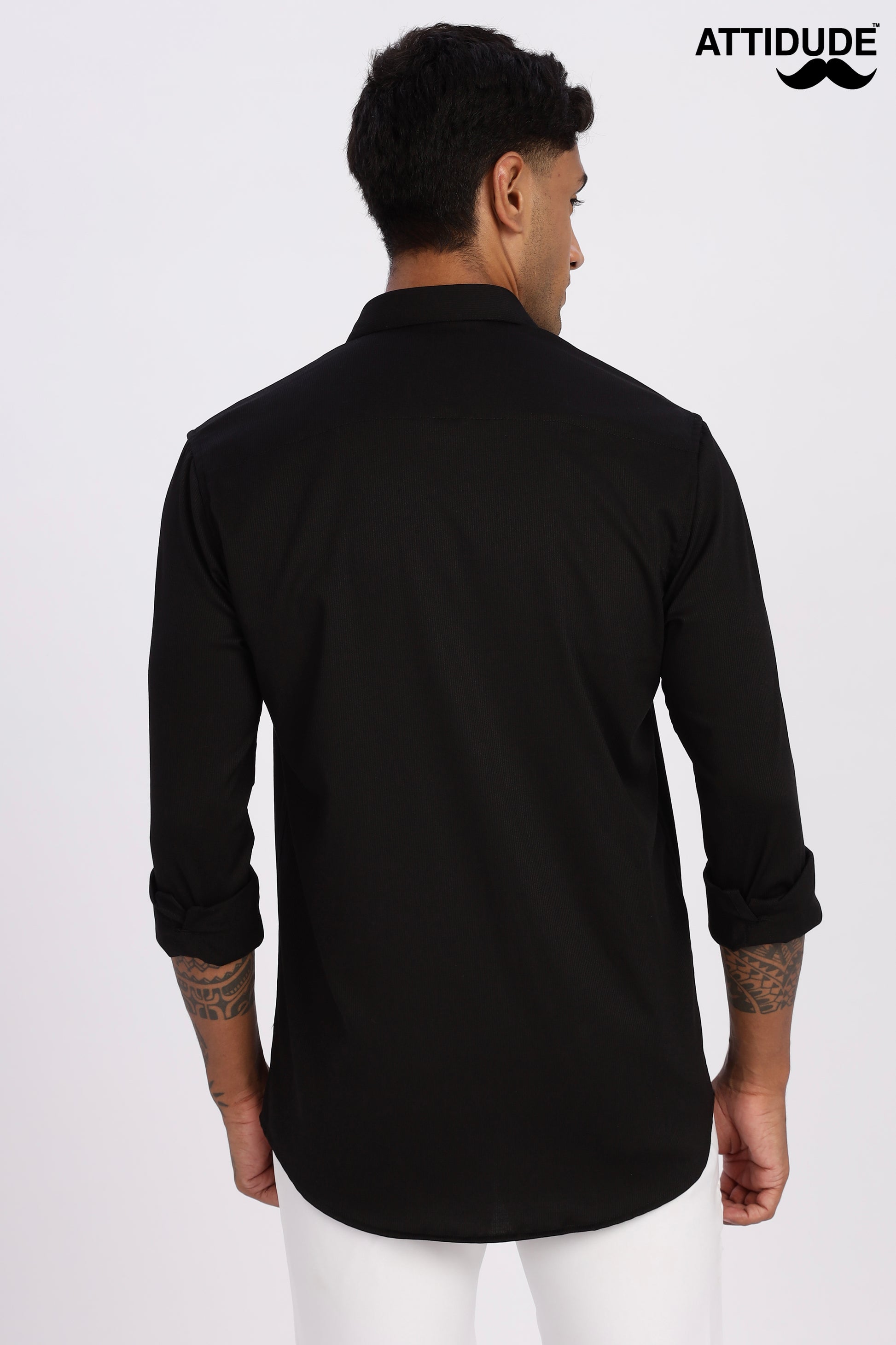 Black Mini Cord-Lycra Full Sleeve Shirt (Article B0017)