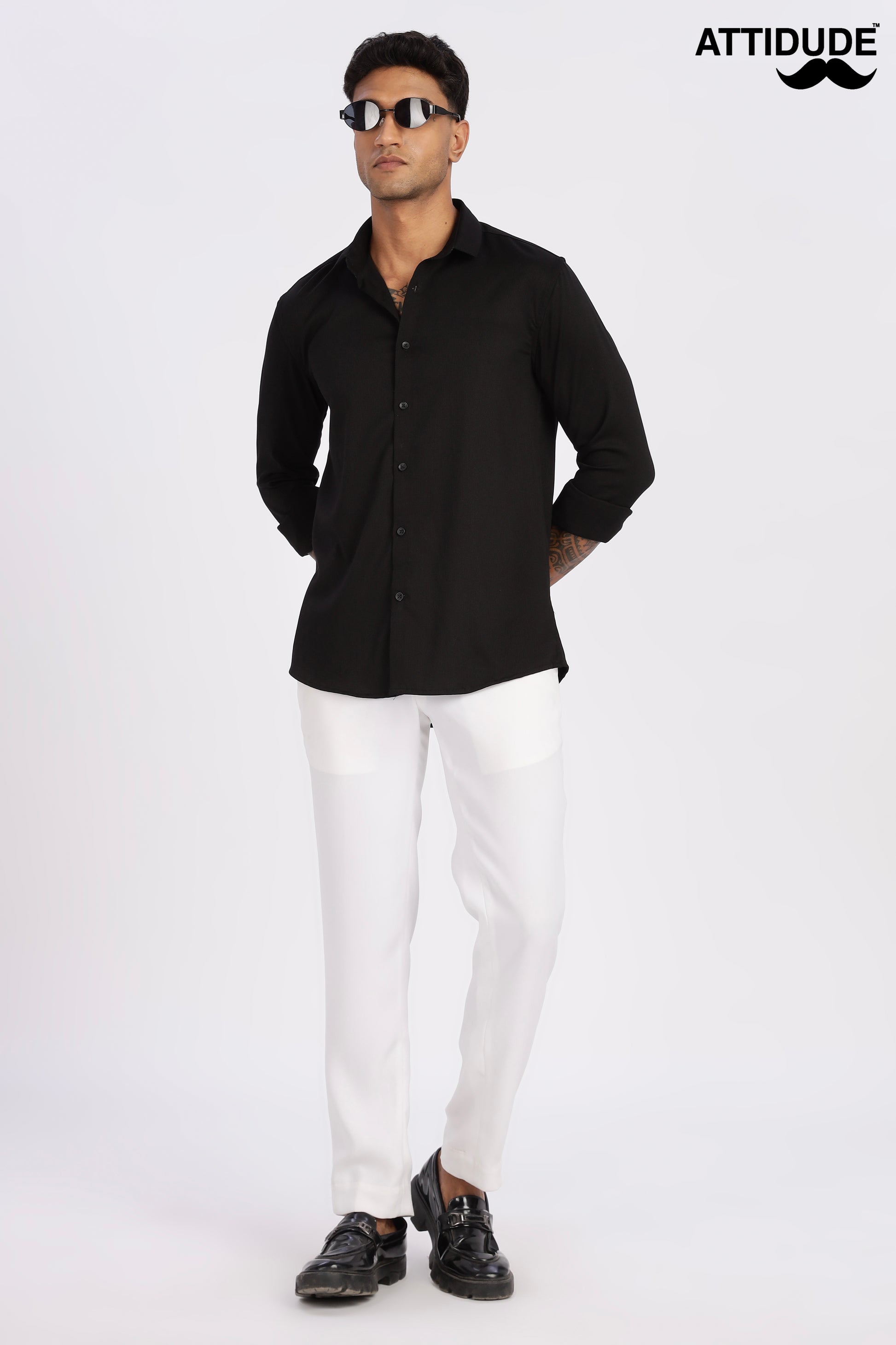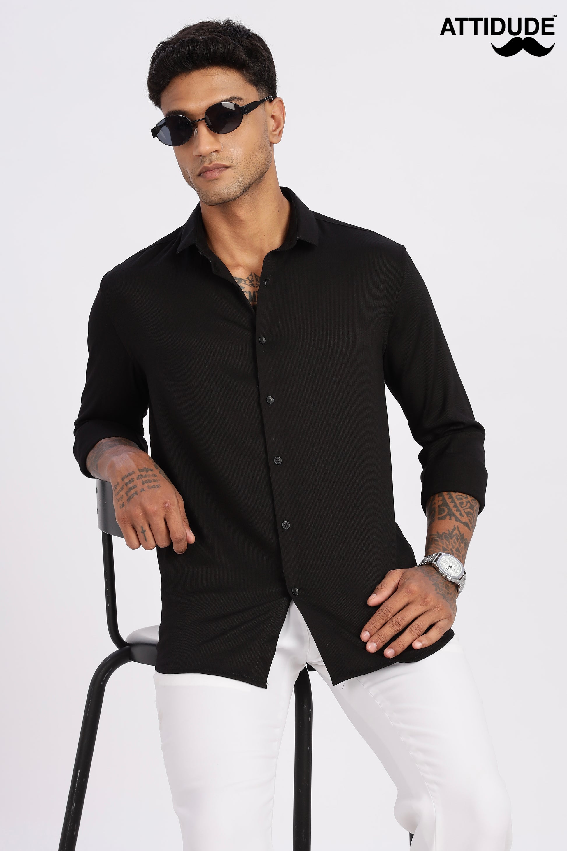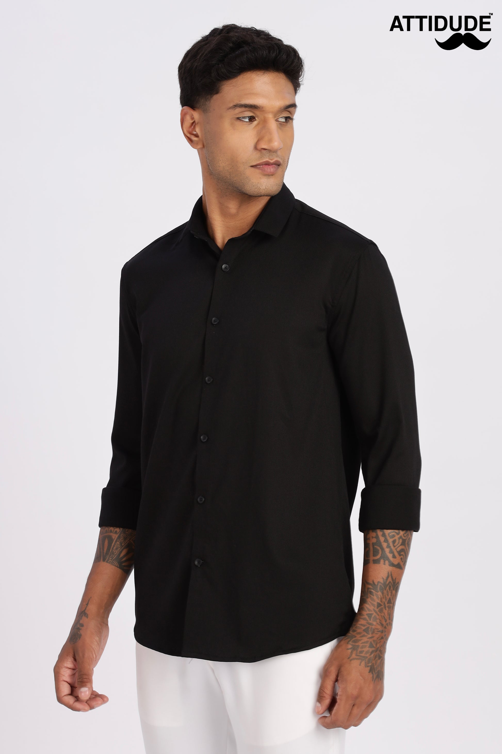 Black Mini Cord-Lycra Full Sleeve Shirt (Article B0017)