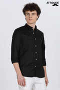 Black Silky Satin Full Sleeve Shirt (Article A27465)