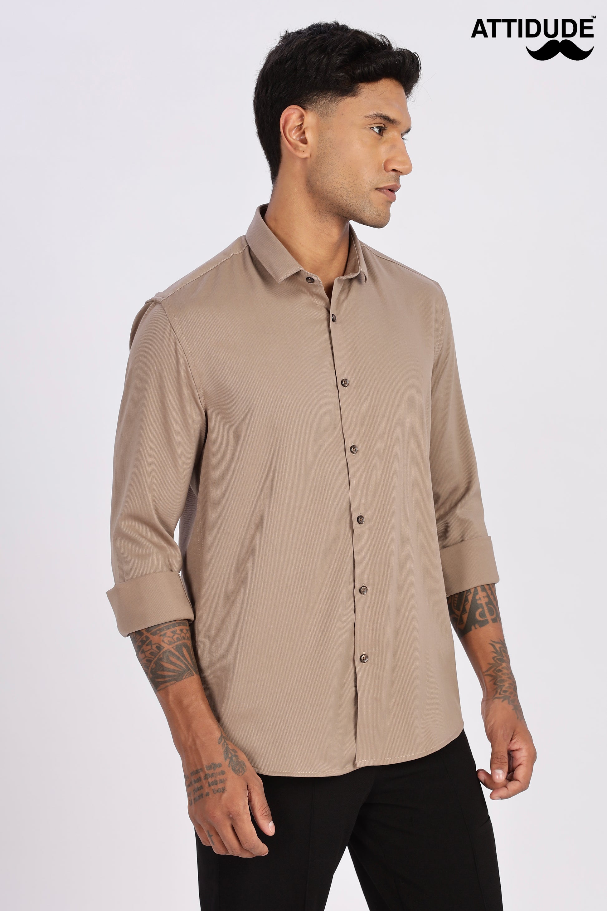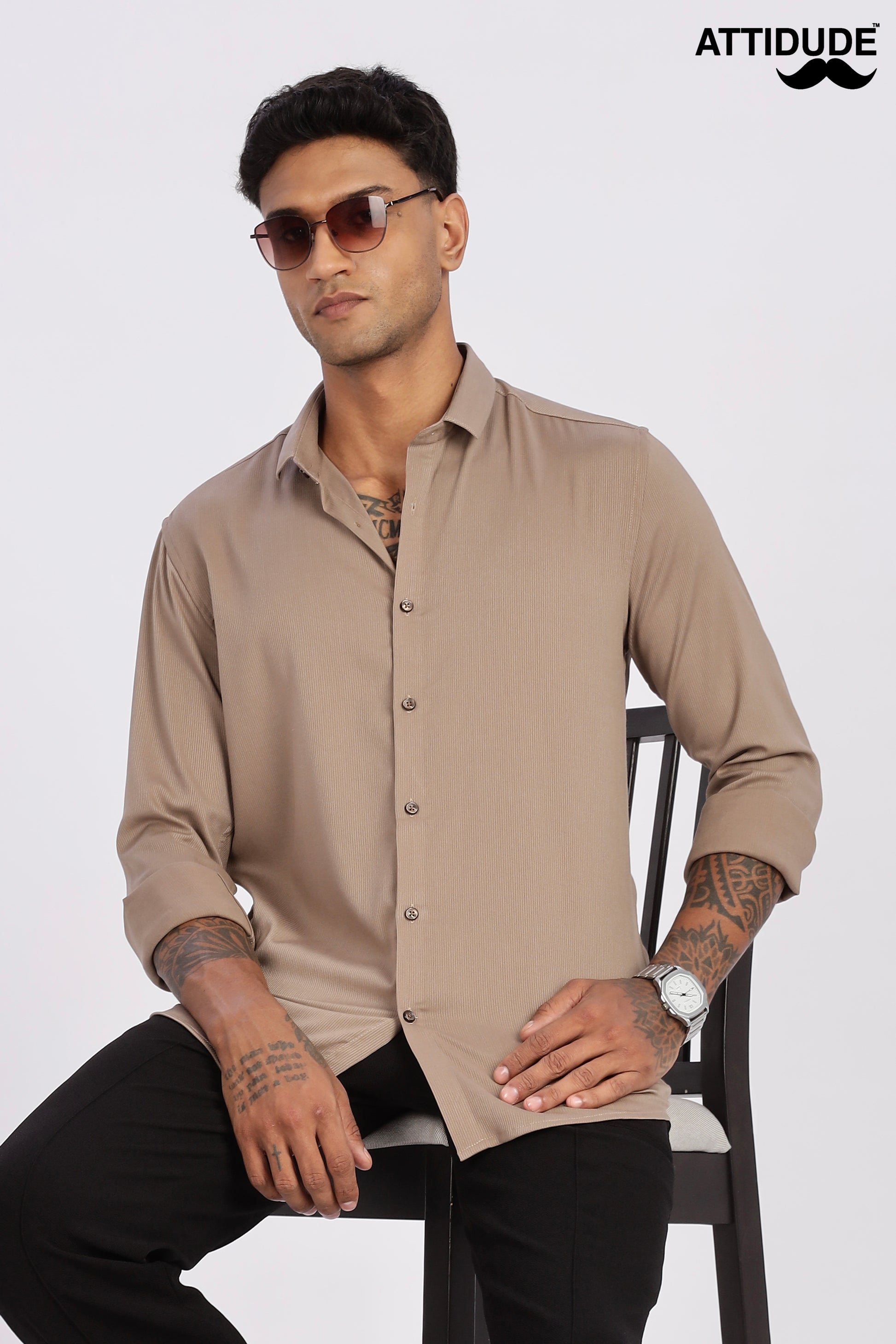 Style Tip: Roll up the cuffs and leave the top button undone for a relaxed yet intentional look that perfectly captures the ATTIDUDE brand.✨