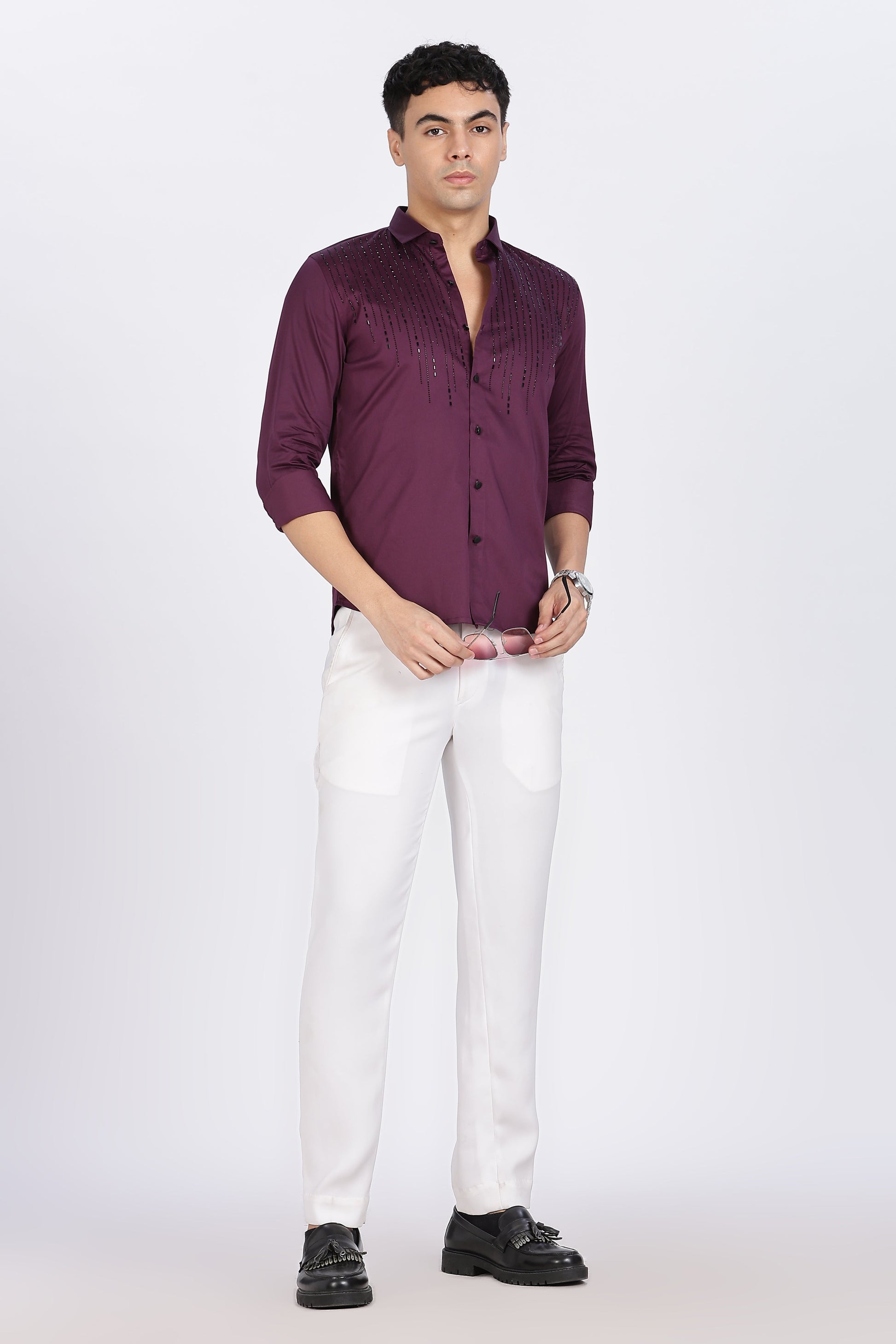 Burgundy Sparkly Beaded Full Sleeve Shirt