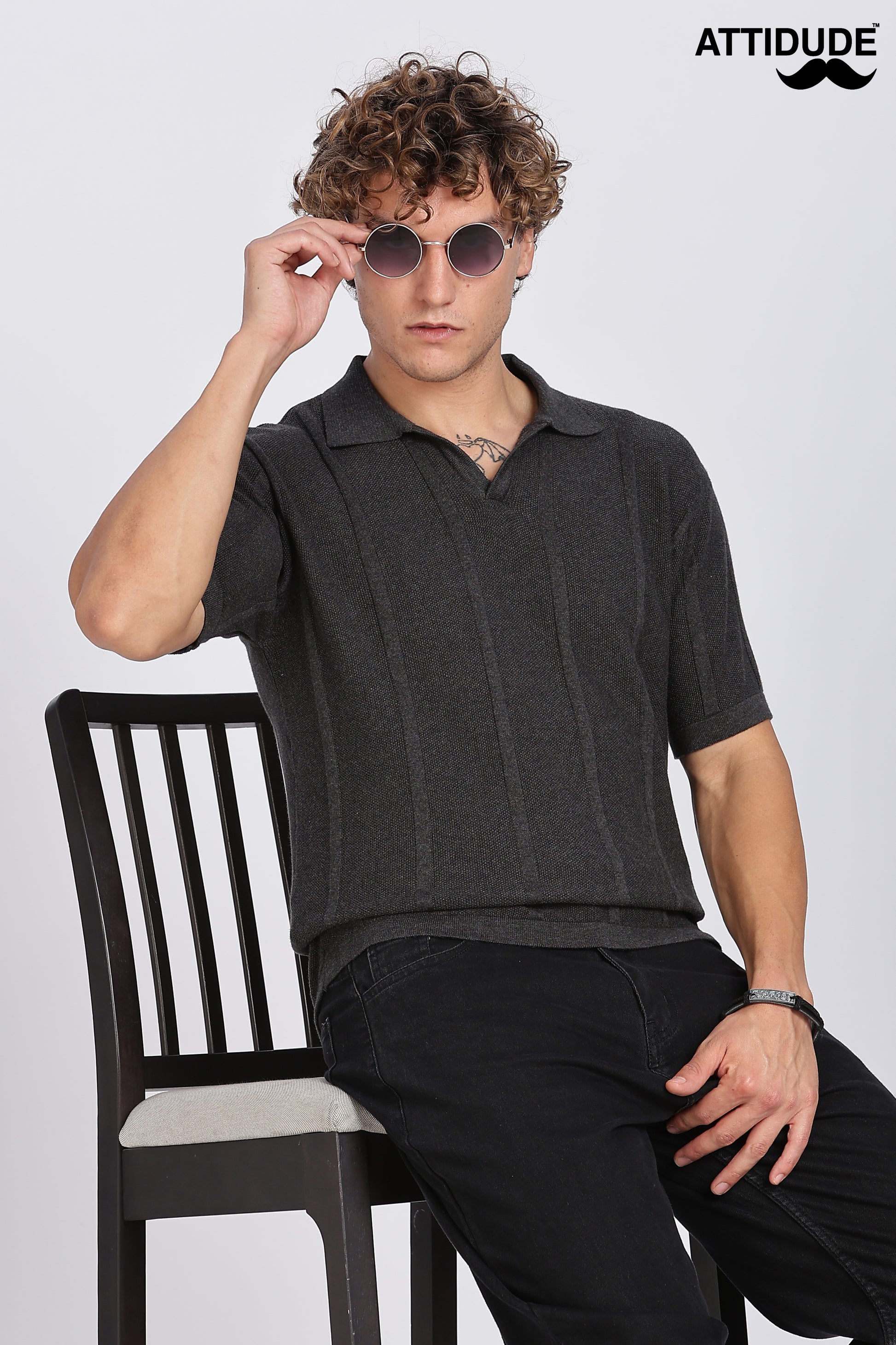 Charcoal Black Urban Ribbed knit Polo (Article B0262)