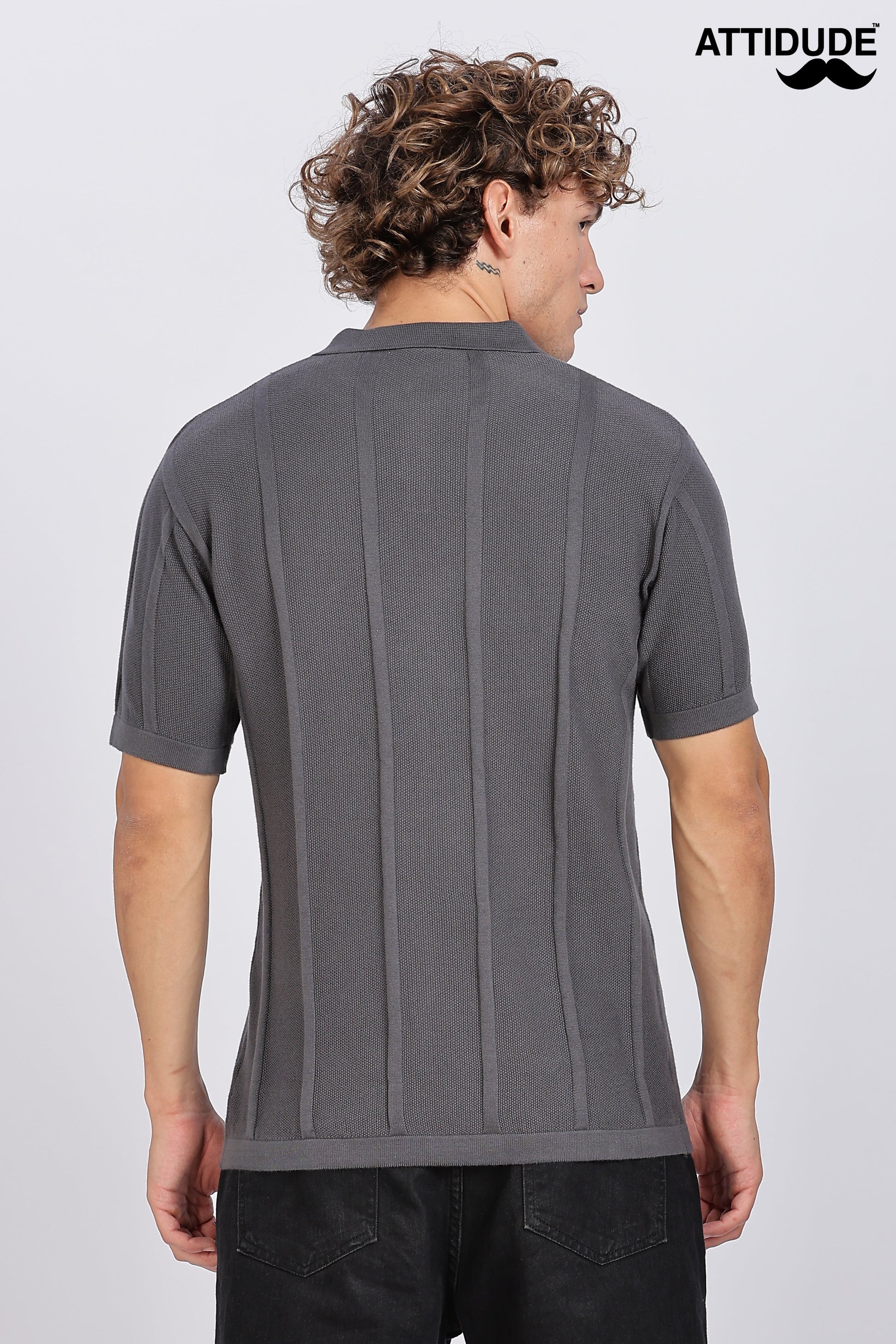 Charcoal Black Urban Ribbed Knitted Polo