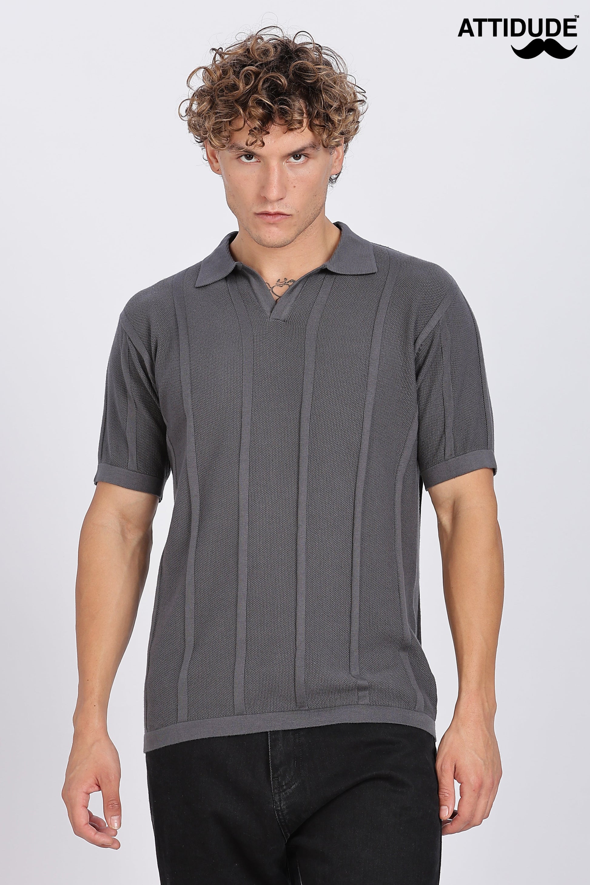 Light Grey Urban Ribbed Knitted Polo