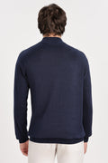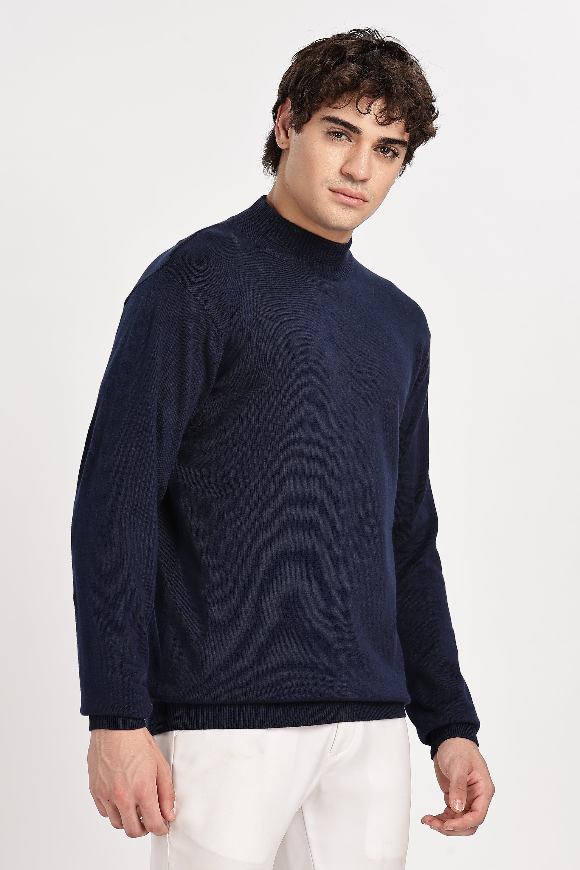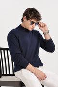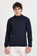Navy Blue Men's Solid High Neck Pullover Sweater (Article - 27442)