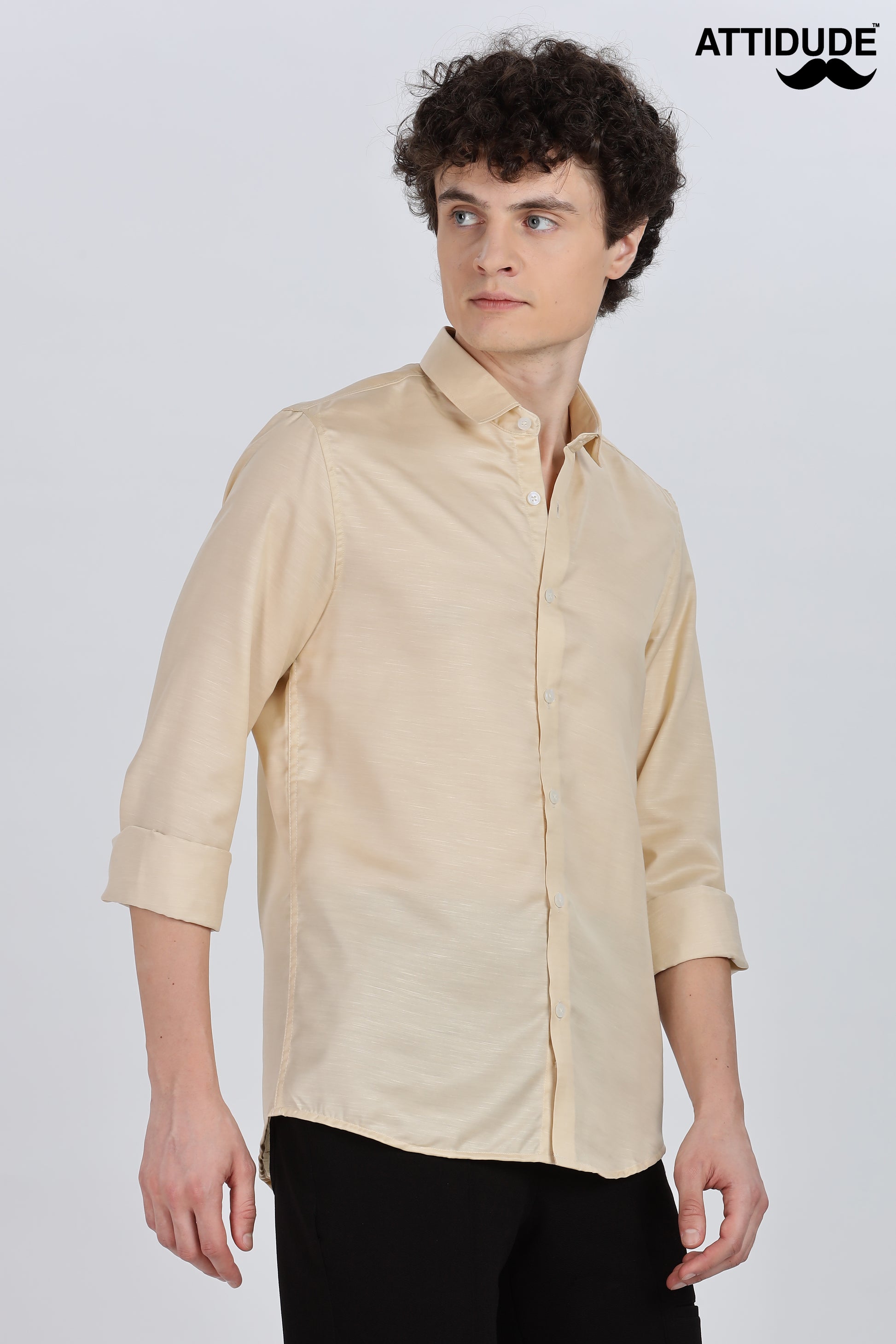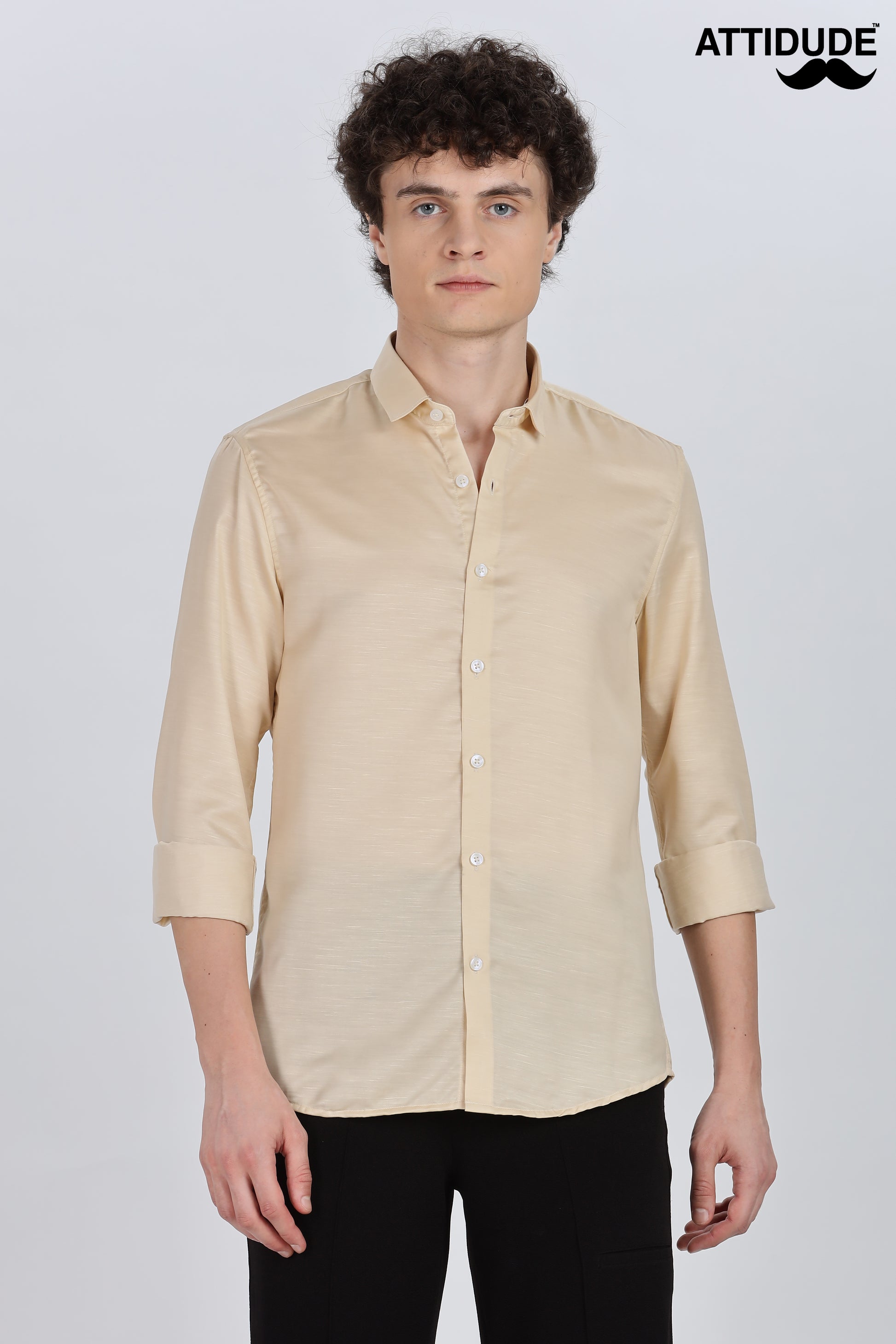 Golden Yellow Silky Satin Full Sleeve Shirt (Article A27465)