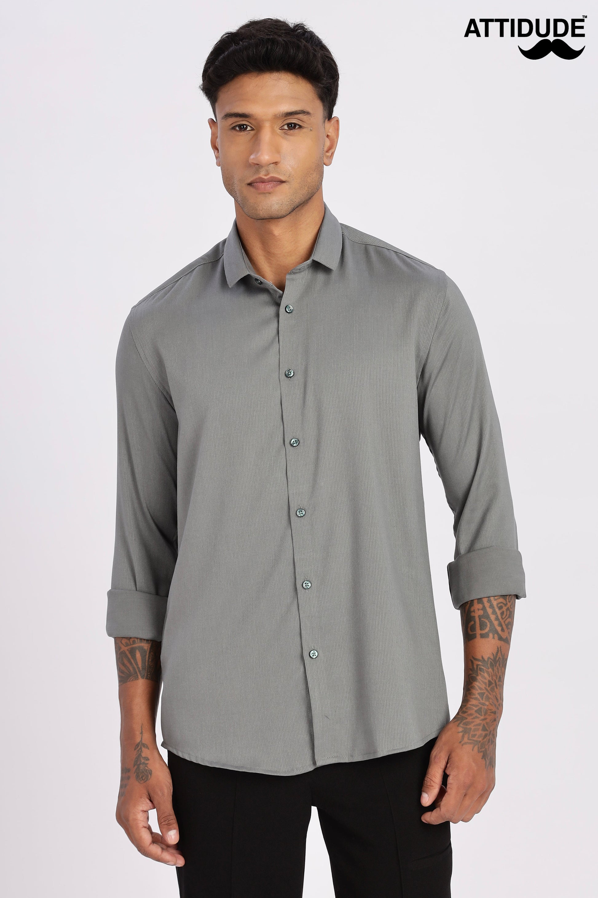 Style Tip: Roll up the cuffs and leave the top button undone for a relaxed yet intentional look that perfectly captures the ATTIDUDE brand.✨