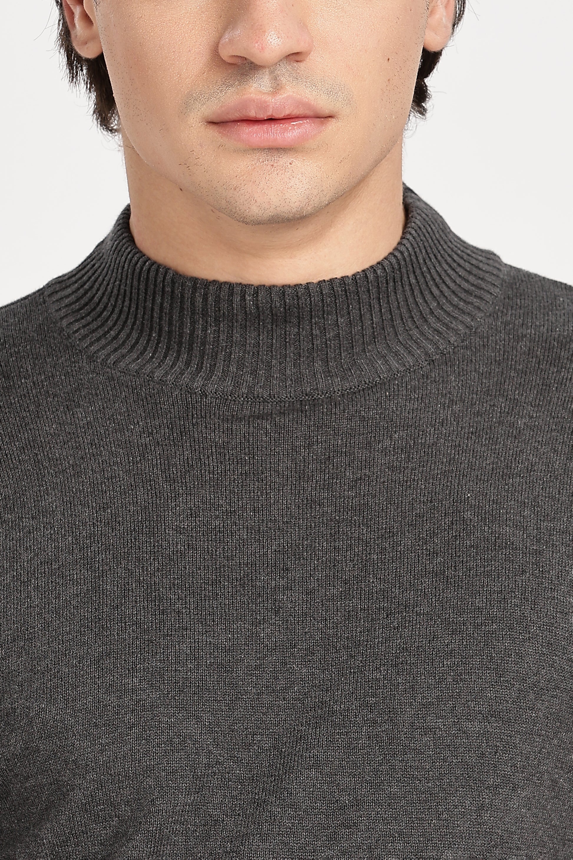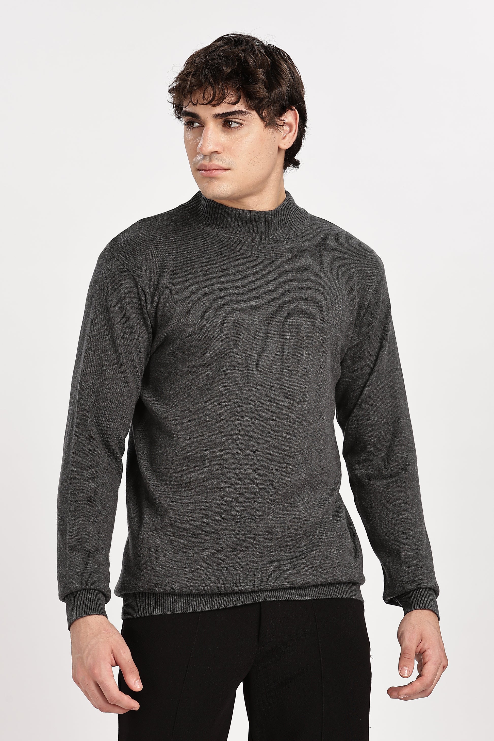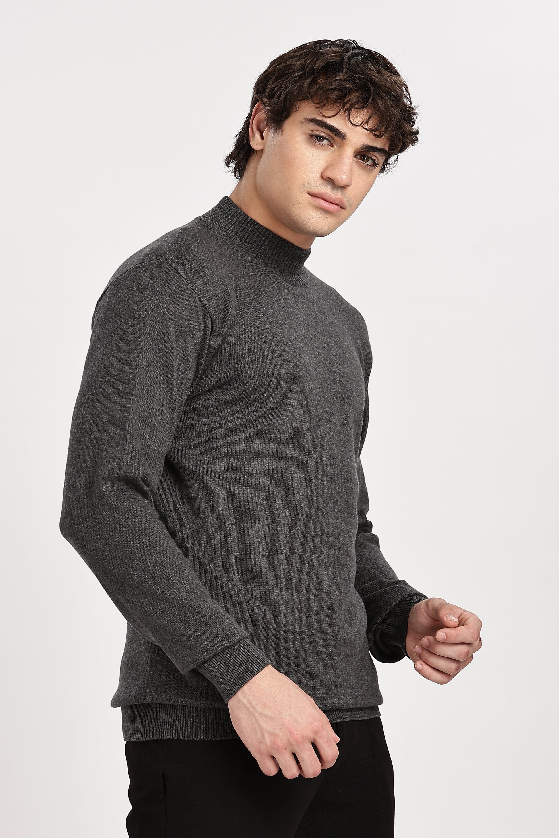 Grey Men's Solid High Neck Pullover Sweater (Article - 27442)