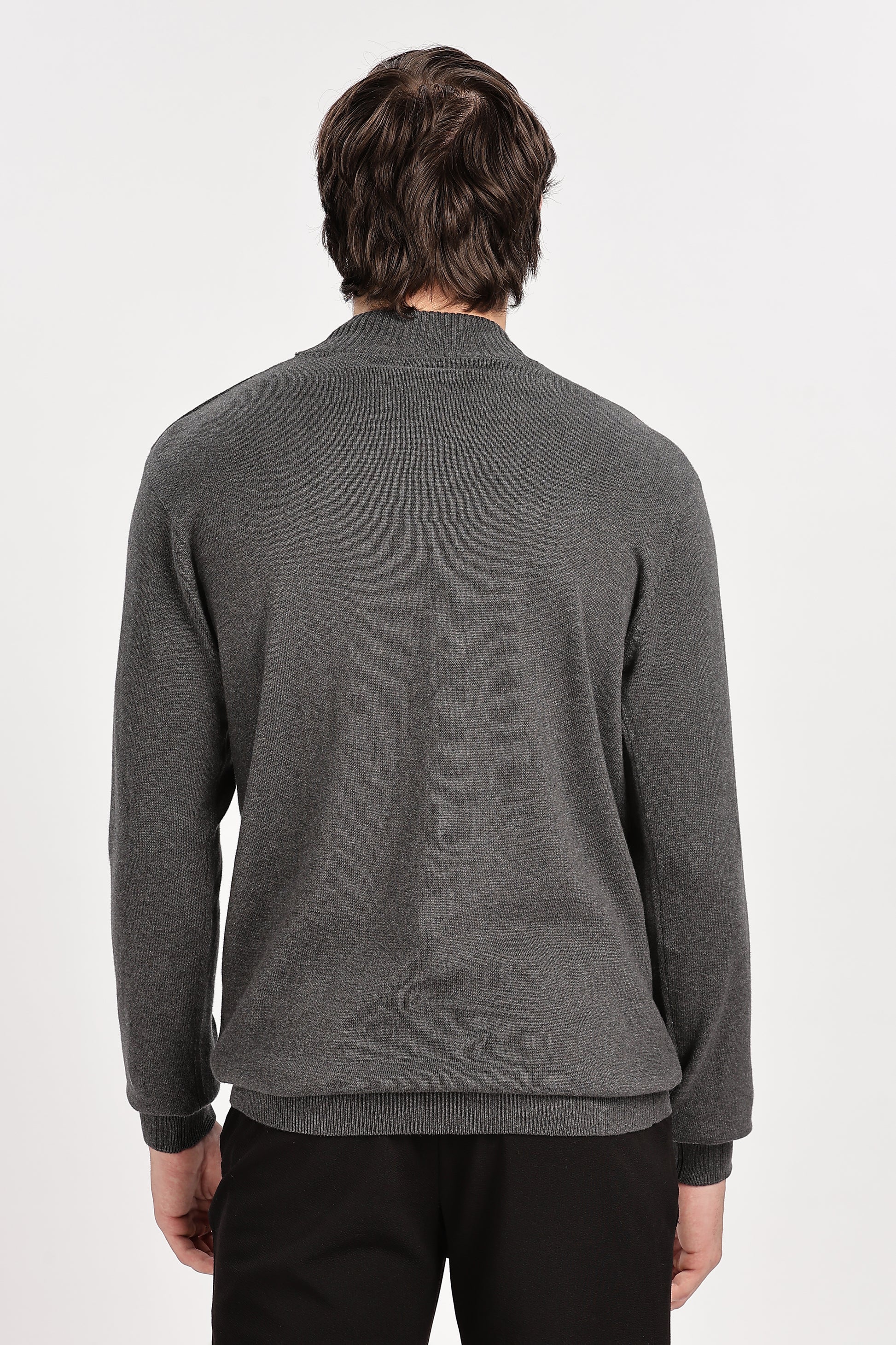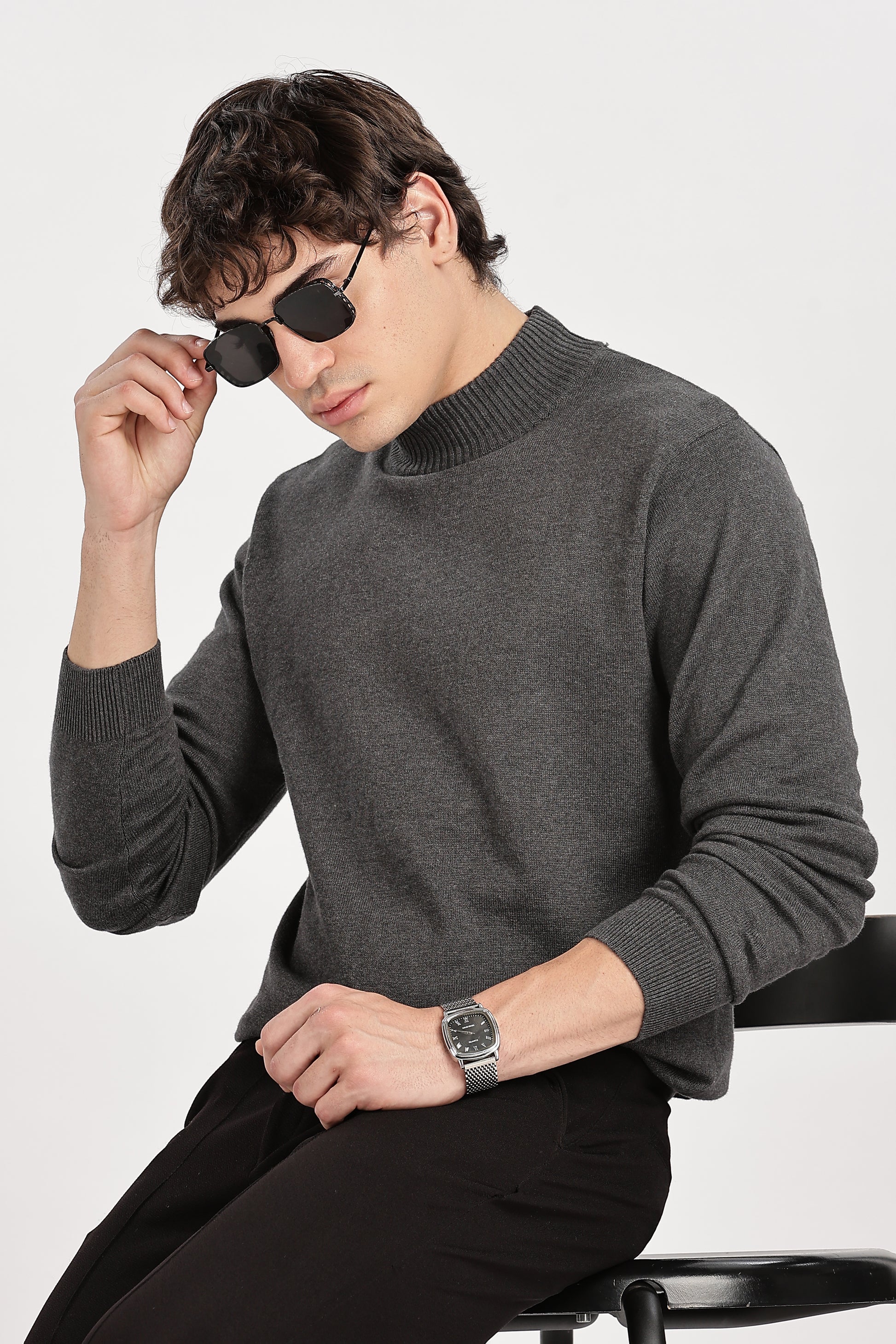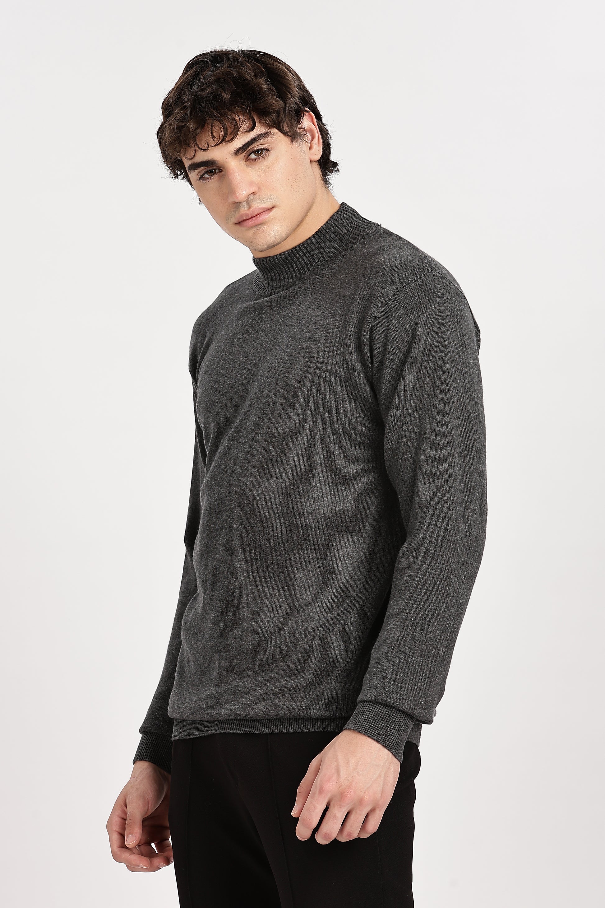 Grey Men's Solid High Neck Pullover Sweater (Article - 27442)