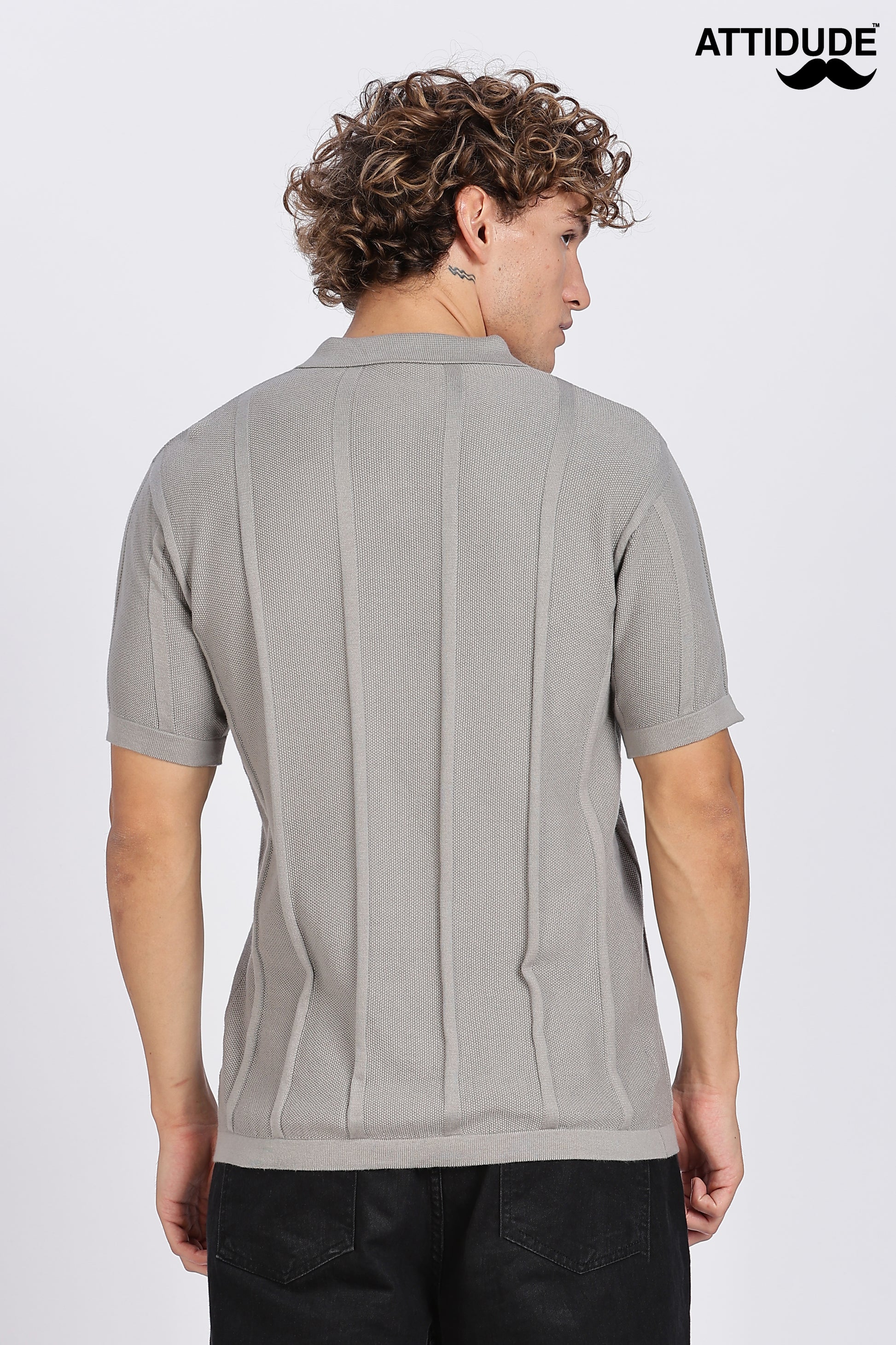 Grey Urban Ribbed knit Polo (Article B0262)