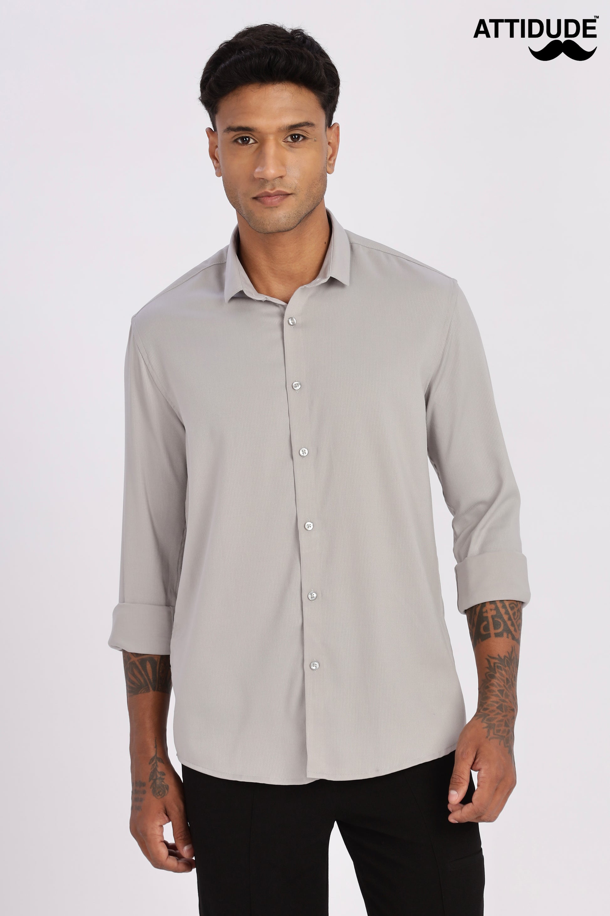 Light Grey Mini Cord-Lycra Full Sleeve Shirt (Article B0017)