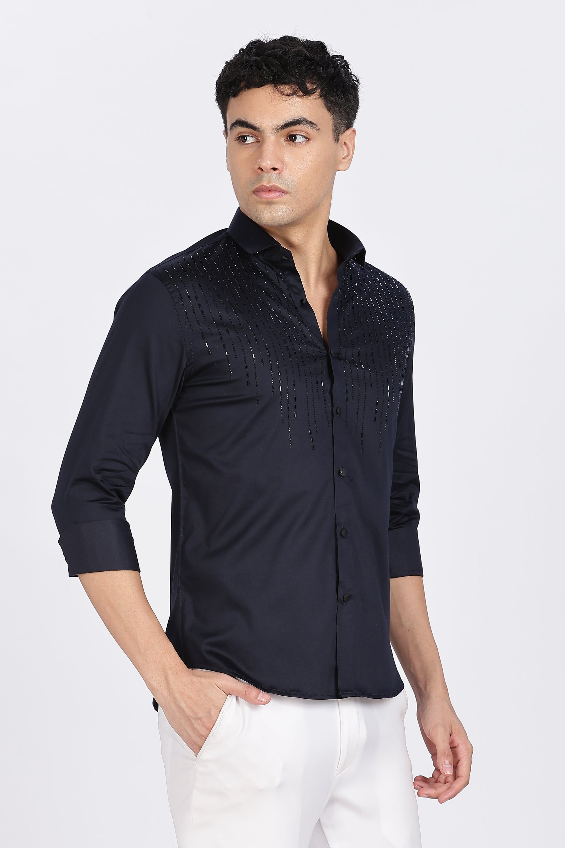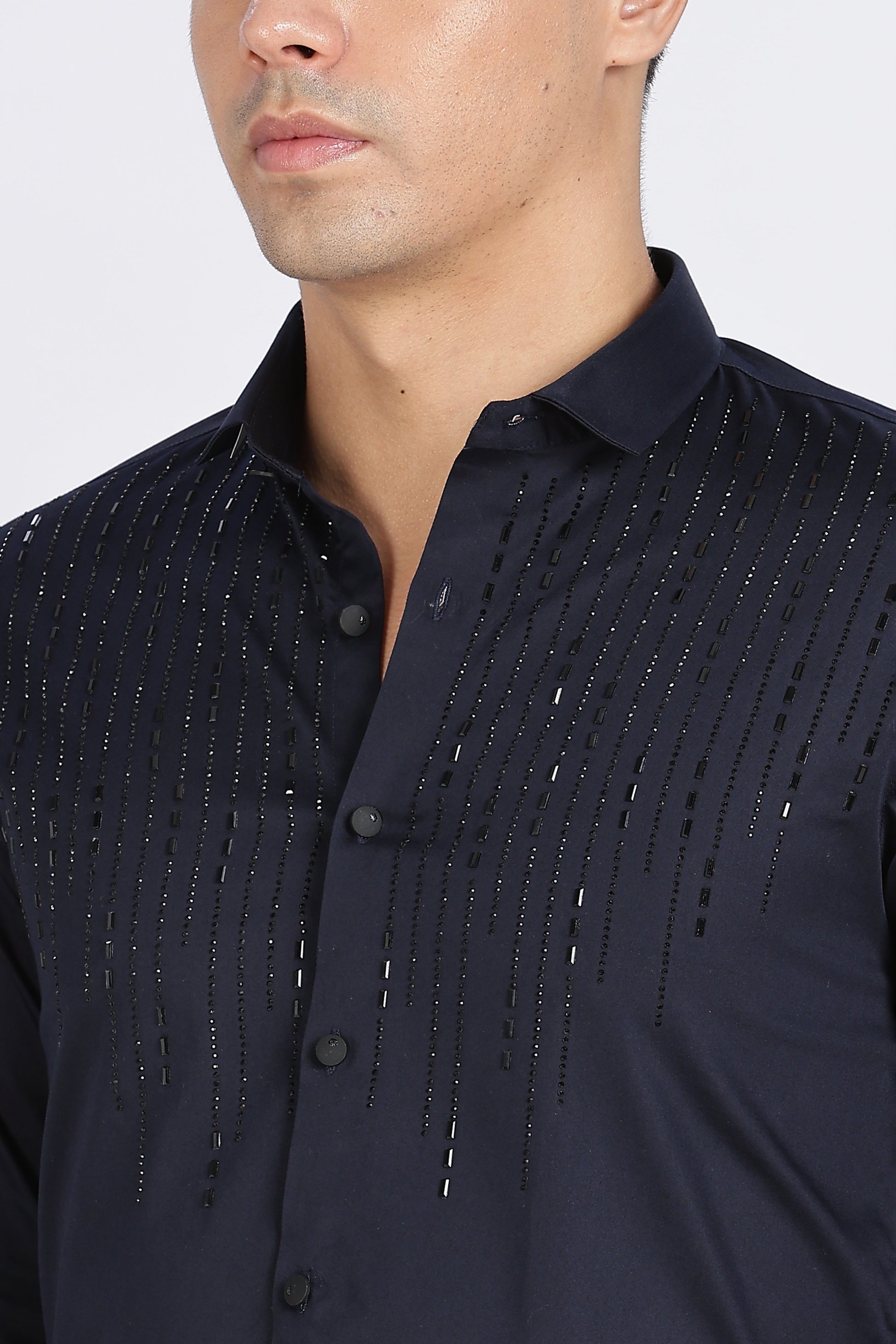 Navy blue Sparkly Beaded Full Sleeve Shirt