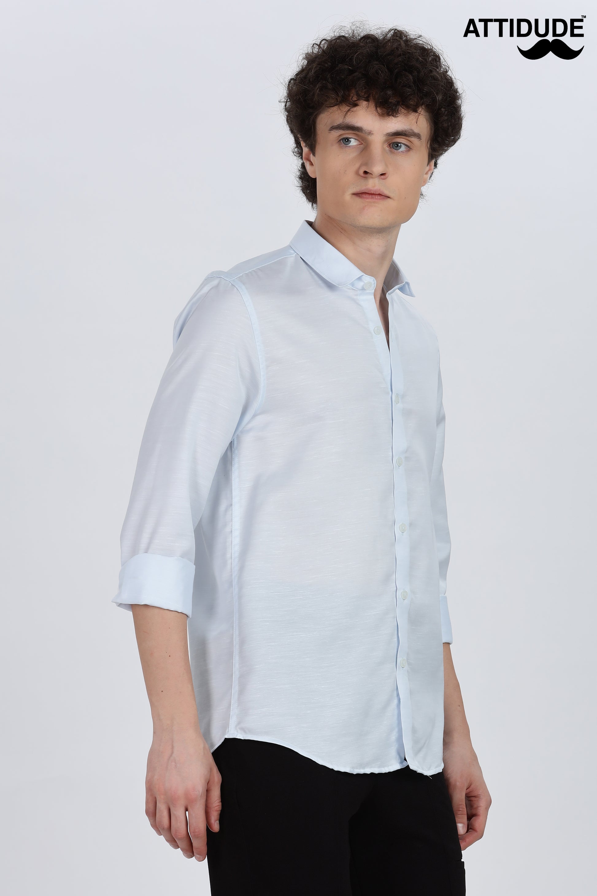 Sky Blue Silky Satin Full Sleeve Shirt (Article A27465)